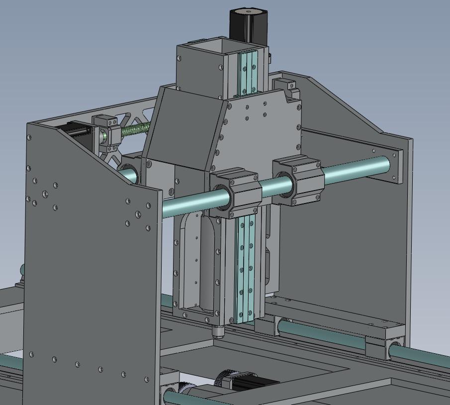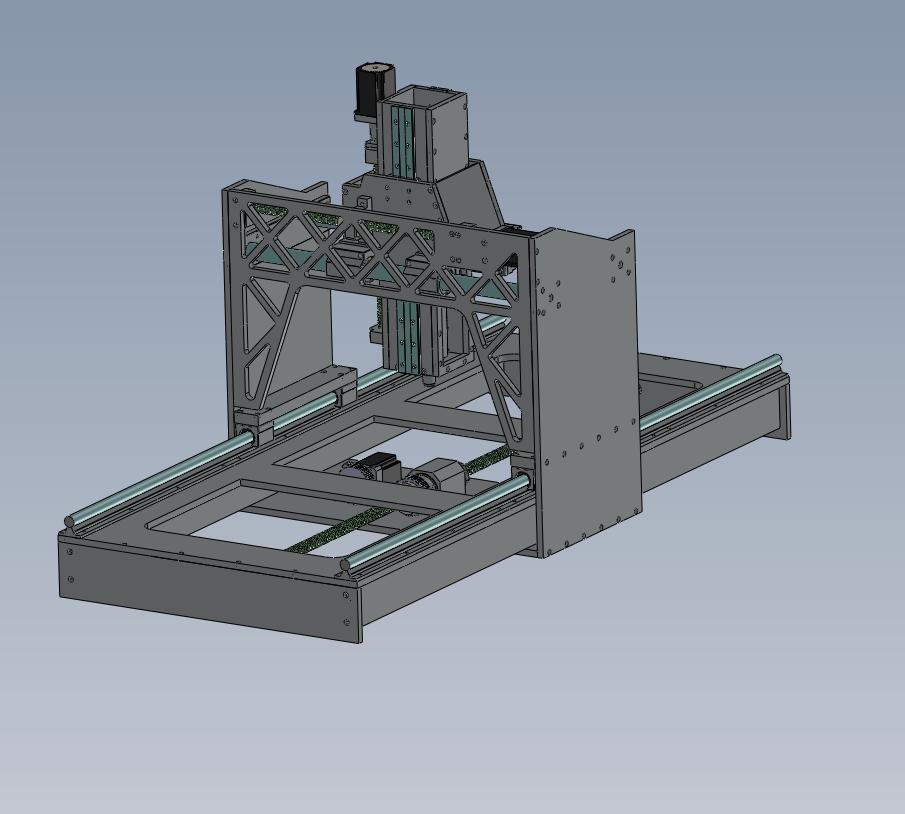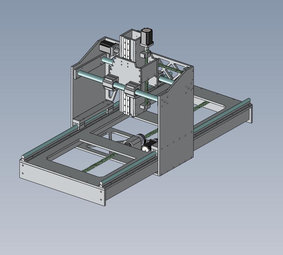 Další z mých projektů byla portálová CNC fréza. Po celkem dobrých zkušenostech s mojí první (10let starou) cnc frézkou na balsu, jsem se rozhodl pro stavbu "pořádného CNC", které by bylo schopno obrábět ve 3D nejen dřevo, ale i dural. Dlouho jsem pročítal fórum www.c-n-c.cz a sbíral nápady. Nakonec jsem se rozhodl pro svoji vlastní konstrukci s poněkud netradičně uspořádanou osou Z. Celý stroj jsem si nejprve po jednotlivých dílech rozkreslil v systému SolidWorks. Jednotlivé díly byly pak sestaveny do konečné sestavy. Chtěl jsem se tím vyhnout případným úpravám a změnám při následné stavbě. Po cca dvou měsících byl návrh hotov a byly odstraněny nedostatky.