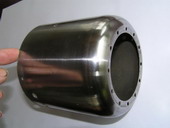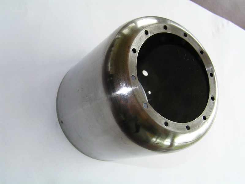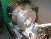 Vlastní stavbu jsem začal pláštěm turbíny. Jako základ je použita plechovka od plynu CV470. Nejhorší prací bylo dostat dolů vrchní barvu, která se musela obrousit šmirglem na soustruhu. Pak následovalo vypíchnutí zadní části (tam přijdou vložit rozváděcí lopatky turbíny) a upíchnutí předku. Tím byl polotovar hotov.