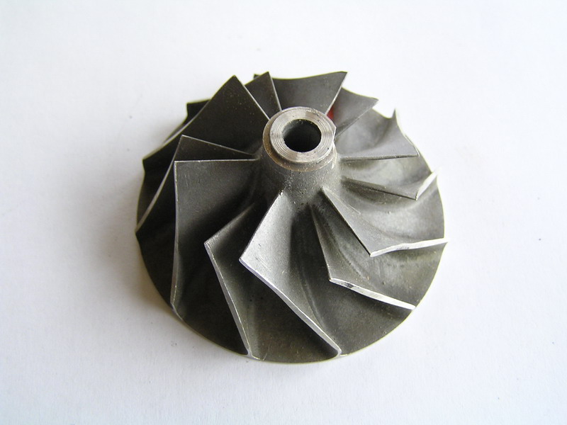 Poměrně jednoduchým krokem bylo zakoupení turbínového kola (odlitek z inconelu) a kompresoru. Zakoupil jsem kvalitní (rentgenované) kolo od švícarské firmy Luscher. Kolo má průměr 66mm. Kompresor s označením 2038 je od firmy Turbolader Schwitzer a má také průměr 66mm. Kompresor se dodává vyvážený, turbínové kolo nikoli - o vyvažování se dočtete níže.
